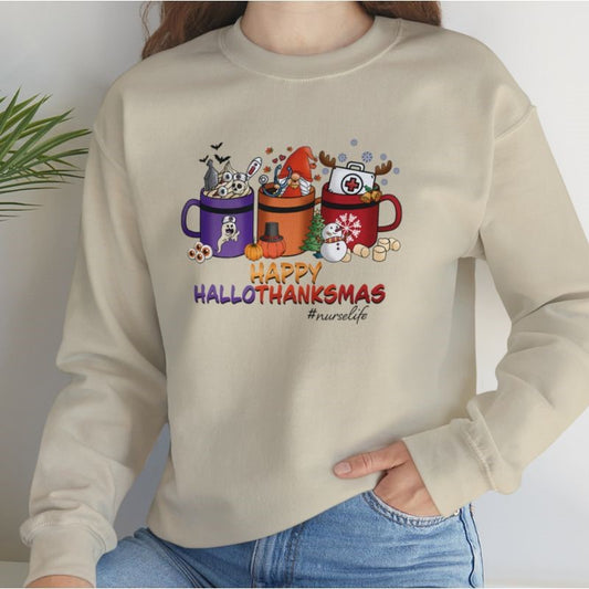 Happy Hallothanksmas Nurse Life Crewneck Sweatshirt