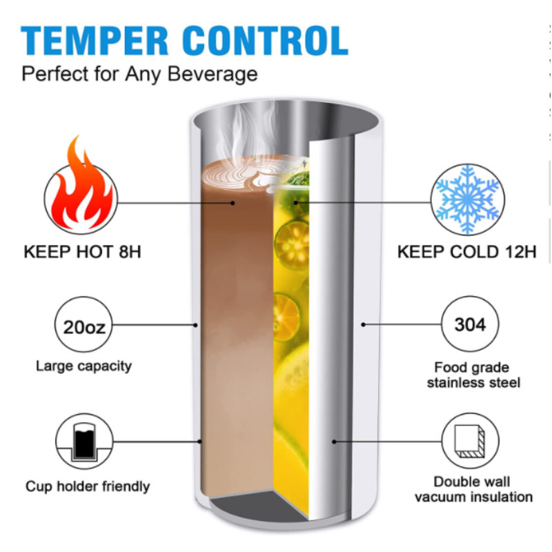 It also has a leakproof lid, so you don't have to worry about spills. I hope this helps you out! Its vacuum-insulated walls and secure lid will keep your drinks hot or cold for hours, and its unique design will keep you motivated to stay energy-efficient on the go.